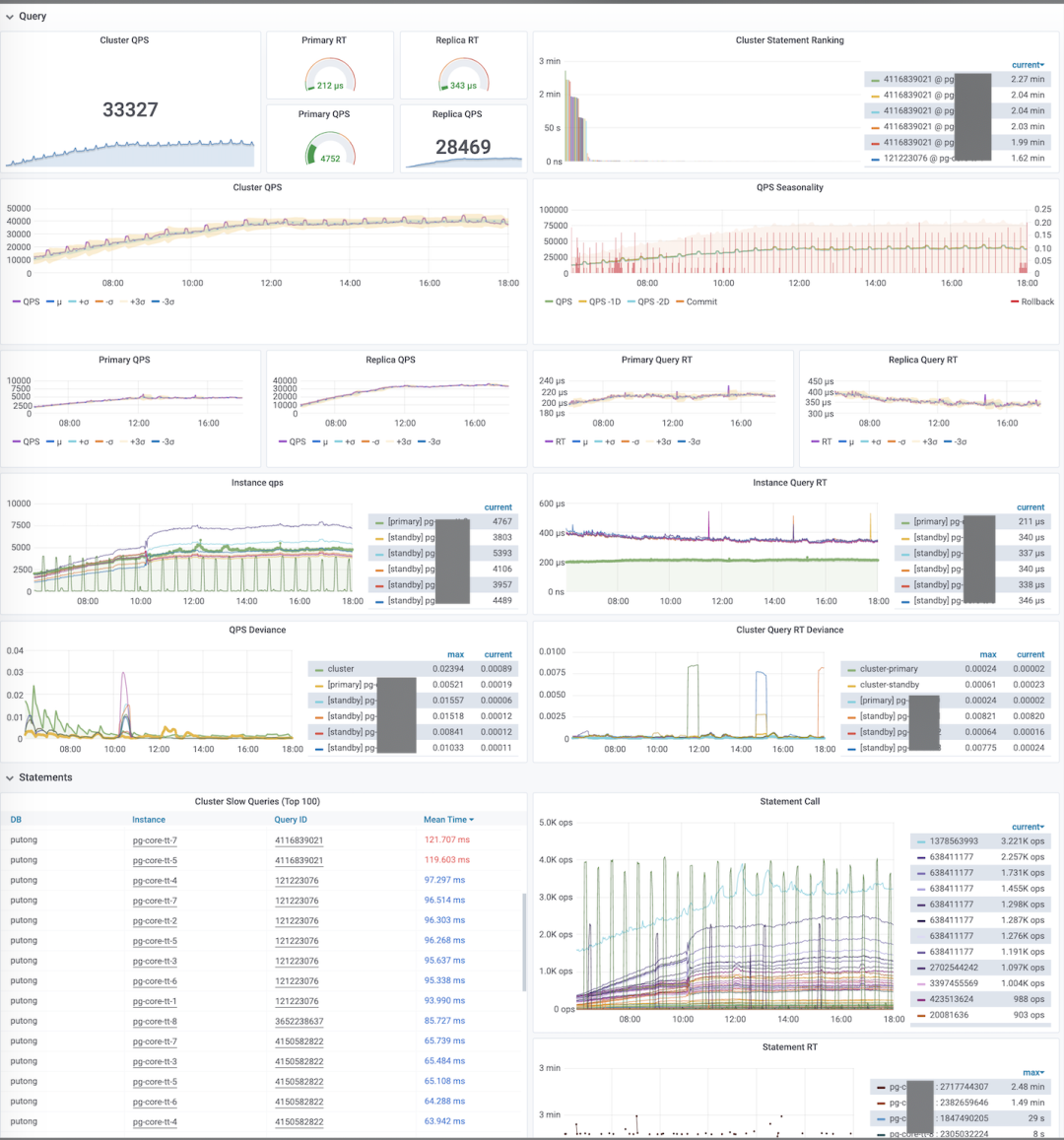 PG全局监控 PG Shard监控 PG集群监控 PG实例监控 PG实例监控(故障排查专用视图) PG节点监控 PG慢查询平台 Redis全局概览 Redis集群监控 Redis实例监控 PG集群健康度评估系统