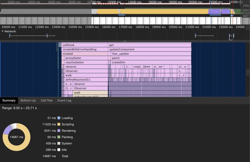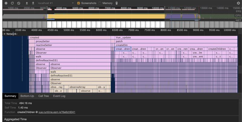 从上图可以看出,Scripting期间除了 Observe 之外,大部分时间都在调用createChildren来创建vue实例