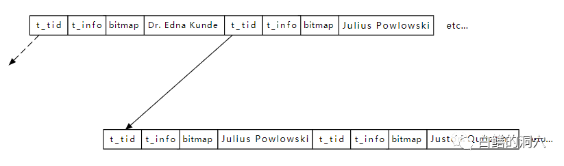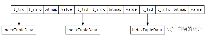 t_tid是指向一个元组的指针。而t_info包含一些统计值,包括有多少个值以及是否包含NULL等。下面的例子更为直观: