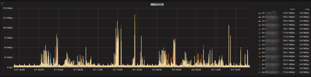 对网卡流量进行聚合,可以看到整个集群的吞吐量情况。