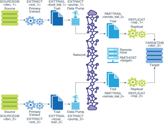 Data Pump:是一个配置在源端的辅助的 Extract 机制,是一个可选组件,如果不配置 Data Pump,那么由 Extract 主进程将数据发送到目标端的 Remote Trail 文件中,如果配置了 Data Pump,会由 Data Pump将Extract 主进程写好的本地 Trail 文件通过网络发送到目标端的 Remote Trail 文件中。