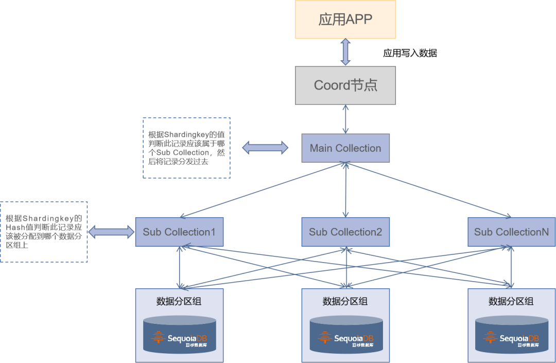 采用分区的目的主要是为了解决单台服务器硬件资源受限问题,如内存或者磁盘 I/O 瓶颈,使得机器能够得到横向扩展;此外还能将系统压力分散到多台机器上,从而提高系统性能,并且不会增加应用程序复杂性。再结合 SequoiaDB 的副本模式,保证系统的高可用性。