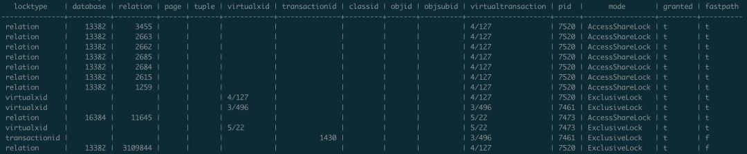 的锁信息是从每个后端进程收集而来的,而fastpath=false