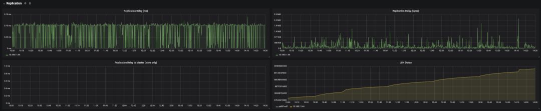 很多类型的故障与主从复制滞后有关,因此,ReplicationDelay是一个重要的监控指标。