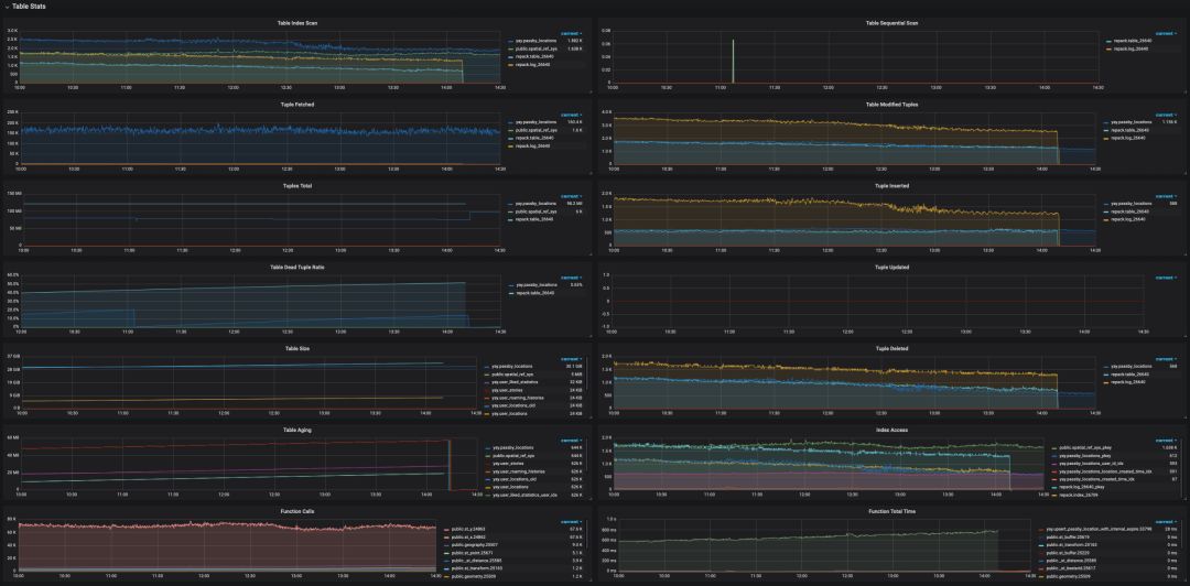 表中元组的拉取,修改,增删改查数目,表的大小,年龄,都有助于精确定位问题的来源。