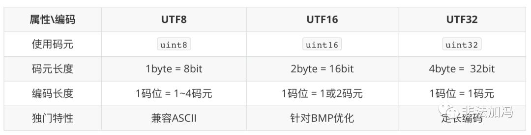 根据使用码元单位的不同,我们有了三种字符编码表:UTF8,UTF-16,UTF-32。