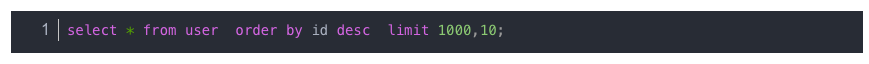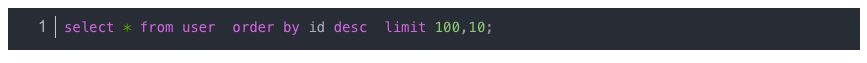 这是查询第十页的数据,我相信大部分的人在写分页查询的时候都是这么写的,其中100:偏移量,意思就是说从哪里之后就是我需要的数据据,10:表示需要查询多少条记录,这个就是mysql的分页查询语法,你能看出这条sql存在什么问题吗?乍一看好像没啥问题,真的是这样吗?我们来看几个例子。