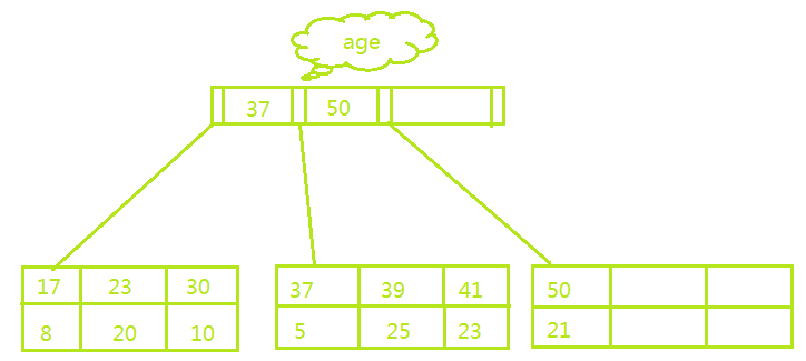 本例中二级索引就是用age构建的B+Tree,其中叶子节点保存的是主键的值。