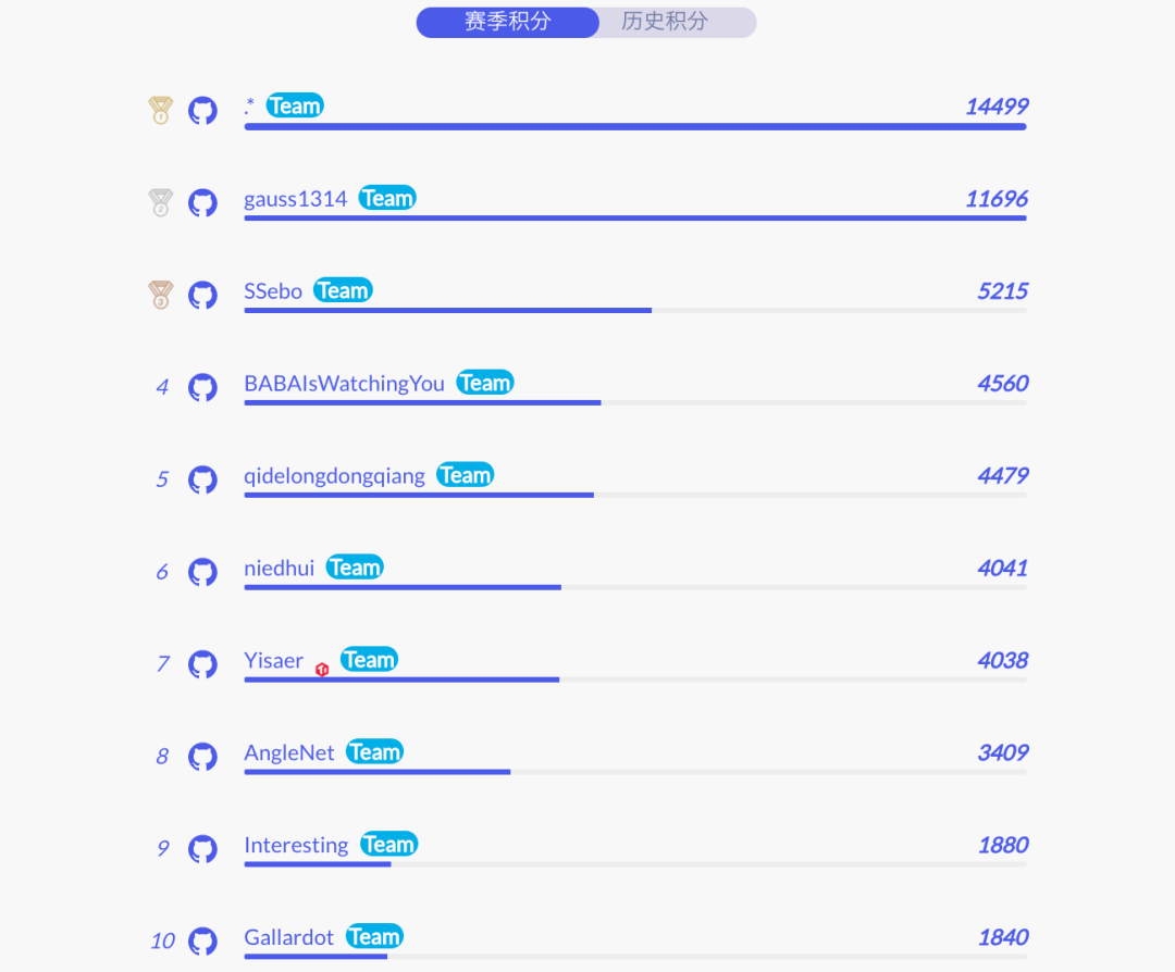 目前两场比赛均于 5 月 30 日结赛,经过一周的代码审核和积分统计,积分排行榜的最终排名已经锁定,下面就带大家看看参赛选手们的累累硕果吧!