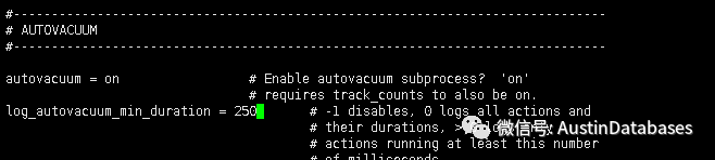 同时在系统进行vacuum的同时,作为DBA 是希望能进行分析的所以日志中能进行记录那是最好的。所以log_autoovacuum_min_duration 可以记录指定时间超过250毫秒的vacuum 就会被记录。