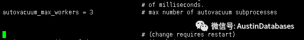在讲完这些后,还有一个问题,就是清理表的vacuum 的线程有没有数量的限制。autovacuum_max_workers 就是控制工作线程的数量的参数,如果你有四个数据库,则另一个数据库就要等待,到下一个周期才能轮上这个数据库的表进行操作。所以可以适当的调整一下这个参数,如果你一个cluster中的数据库比较多的情况下。