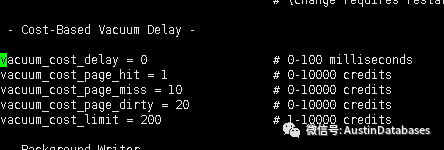 假如 vacuum_cost_delay = 20 的情况下,一秒是1000毫秒,则会发生50次的vacuum,在默认的情况下 根据时间的定义