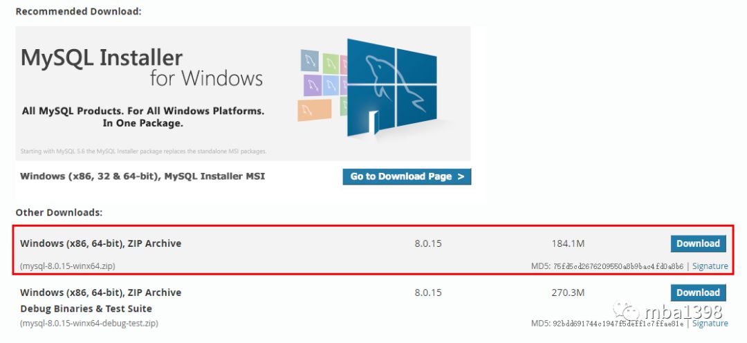 Mysql官网下载最新的安装包:https://dev.mysql.com/downloads/mysql/