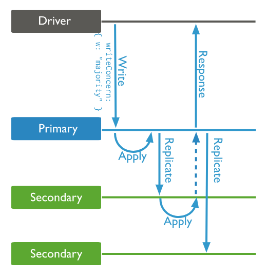既然我们的数据库拥有至少超过三个节点(1Primary+2Secondary),Secondary 通过同步 Primary 的数据来保持一致性,那么当我们写操作的时候,如何保证数据安全的落盘呢?
