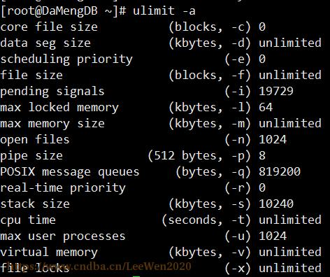 [root@DaMengDB ~]# ulimit -a