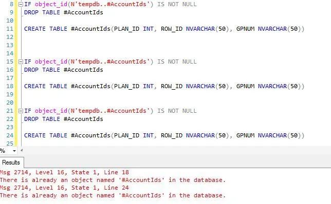 “就是这个临时表,我在每段 batch 开头都 Drop 了下,接着创建,结果老提示 there is already an object named #AccountList ”
