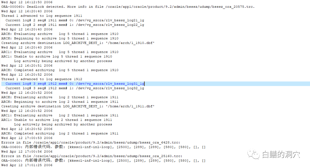 接到客户发来的TRACE后我们又仔细分析了ALERT LOG,发现了一个有趣的现象,就是在这个ORA-600的前后都会出现一个或者几个ORA-60错误: