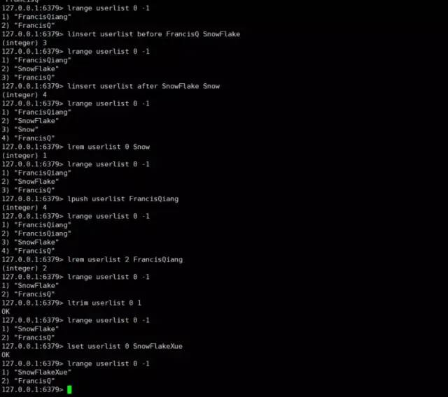 linsert key before|after item newitem 在指定元素的前面或者后面添加新元素
