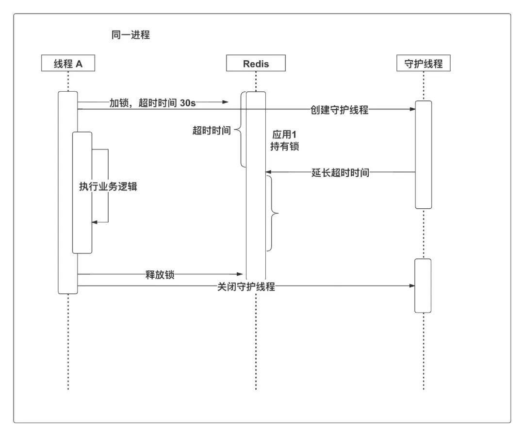 加锁成功后,同时创建一个守护线程。守护线程将会定时查看锁是否即将到期,如果锁即将过期,那就执行 EXPIRE 等命令重新设置过期时间。