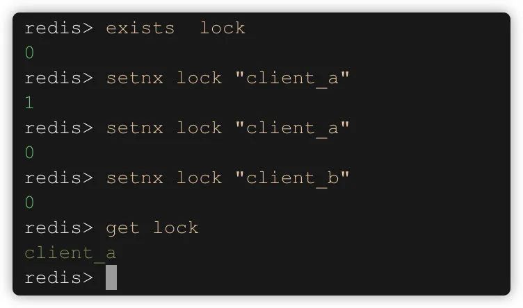 使用 Redis 实现一个简单的分布式锁,非常简单,可以直接使用 SETNX 命令。