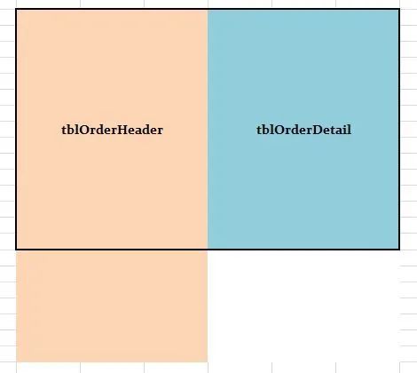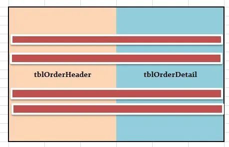 比如,上面两张表, tblOrderHeader, tblOrderDetail. 他们的外键是OrderId.