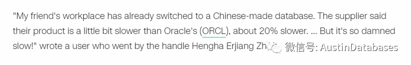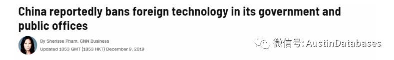 当然我们自己也意识到此类问题,上图是某美国财经报道相关的文字, 中国政府禁止国外技术在政府和公共部门被使用。 所以这就是中国各大银行也在和ORACLE 脱离关系的一个原因。谁都不愿意,在关键部门被人家掐住脖子。下面的文字就是一段证实。