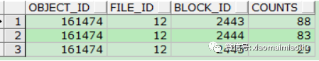 15 GROUP BY DBMS_ROWID.ROWID_OBJECT(ROWID),