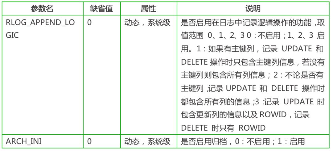 ARCH_INI和RLOG_APPEND_LOGIC参数说明如下: