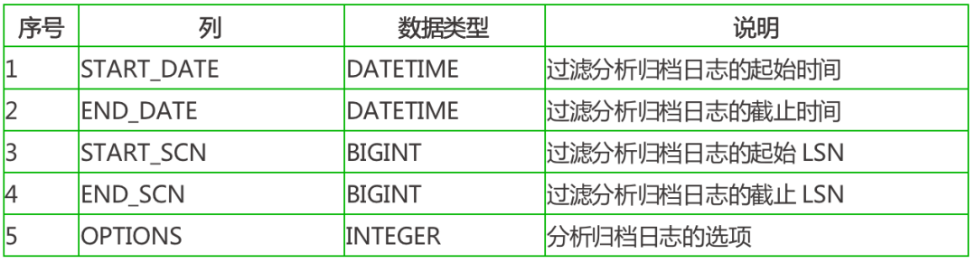 V$LOGMNR_PARAMETERS显示当前会话 START_LOGMNR 启动日志文件分析的参数。此动态视图与 Oracle 兼容,下表中未列出的列 DM 暂不支持,查询时均显示 NULL。