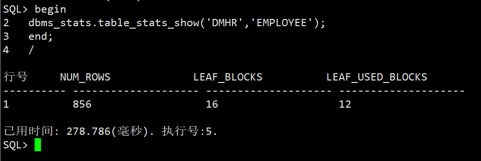 查看DMHR模式下的EMPLOYEE表的统计信息说明使用方法:TABLE_STATS_SHOW