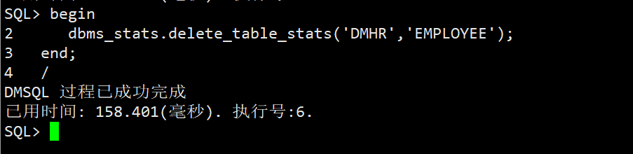 删除DMHR模式下表EMPLOYEE 的统计信息