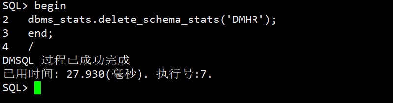 删除模式DMHR下的所有对象的统计信息