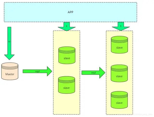 从架构图看,由slave来把数据同步到另外的slave,这样连接到master节点的slave就变少了。优点:1、减轻了master复制数据的压力 缺点 1、存在数据延迟的问题