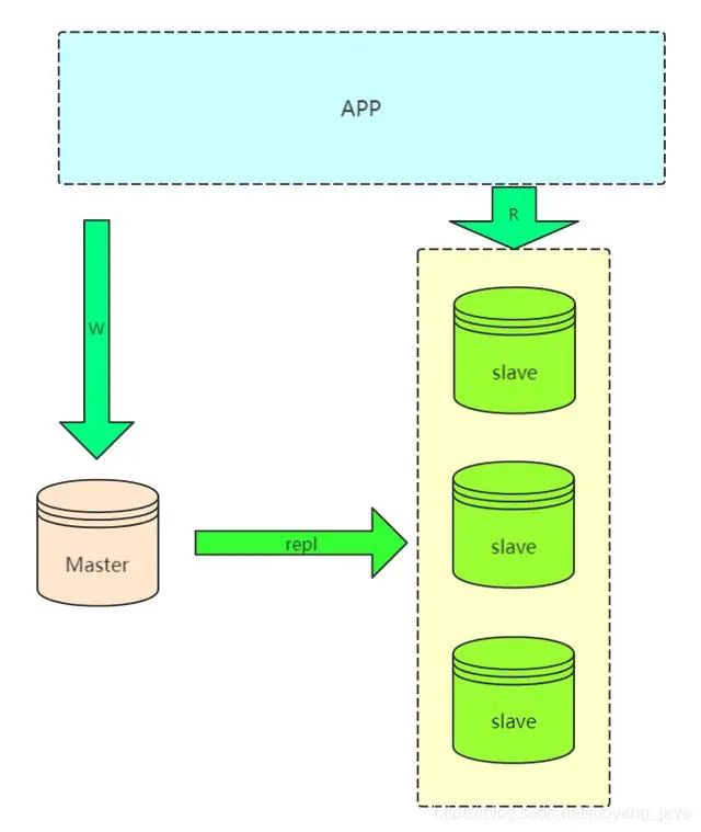 这种架构基本上90%以上会采用的数据库架构。这种架构的 优点:1、数据库架构简单 2、维护方便 缺点:1、master存在单点问题,不能停机维护 2、读压力大slave过多的话,主从同步会影响master的性能