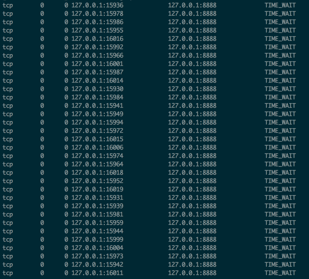 tcp4 0 0 127.0.0.1.1080 127.0.0.1.59061 TIME_WAIT