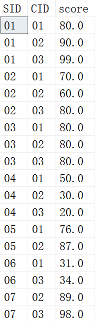INSERT INTO SC VALUES('03' , '03' , 80)