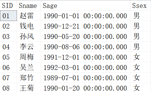 INSERT INTO Student VALUES('08' , N'王菊' , '1990-01-20' , N'女')