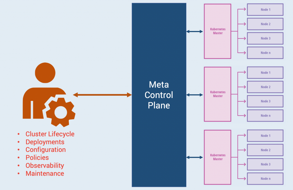 随着组织内集群数目的增长,用户需要一个元控制平面来负责集群管理。元控制平面将确保参与的集群是规范化的,并且与其配置一致。