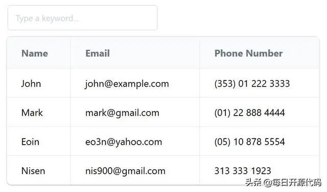 也即是一个可以到处运行的表格库。Grid.js 没有第三方依赖锁定,其唯一的外部依赖已经被打包在内,意味着它能在所有的前端框架,包括没有框架的情况下使用。