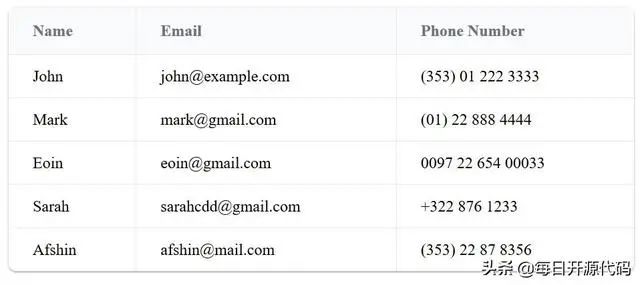 ['John', 'john@example.com', '(353) 01 222 3333'],