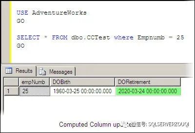 为了验证该计算列将在任何更新发生时更新,我们将更新[DOBirth]使[empNumb] = 25。