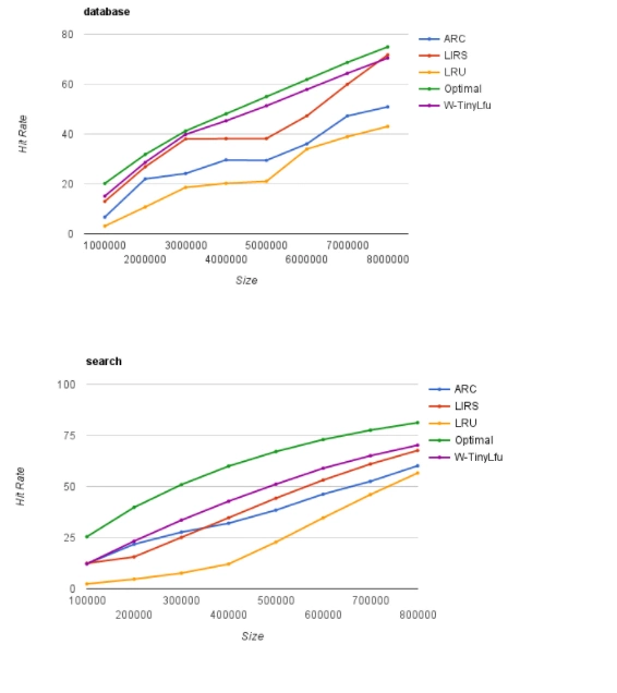 剔除算法方面,GuavaCache采用的是「LRU」算法,而Caffeine采用的是「Window TinyLFU」算法,这是两者之间最大,也是根本的区别。 立即失效方面,Guava会把立即失效 (例如:expireAfterAccess(0) and expireAfterWrite(0)) 转成设置最大Size为0。这就会导致剔除提醒的原因是SIZE而不是EXPIRED。Caffiene能正确识别这种剔除原因。 取代提醒方面,Guava只要数据被替换,不管什么原因,都会触发剔除监听器。而Caffiene在取代值和先前值的引用完全一样时不会触发监听器。 异步化方方面,Caffiene的很多工作都是交给线程池去做的(默认:ForkJoinPool.commonPool()),例如:剔除监听器,刷新机制,维护工作等。