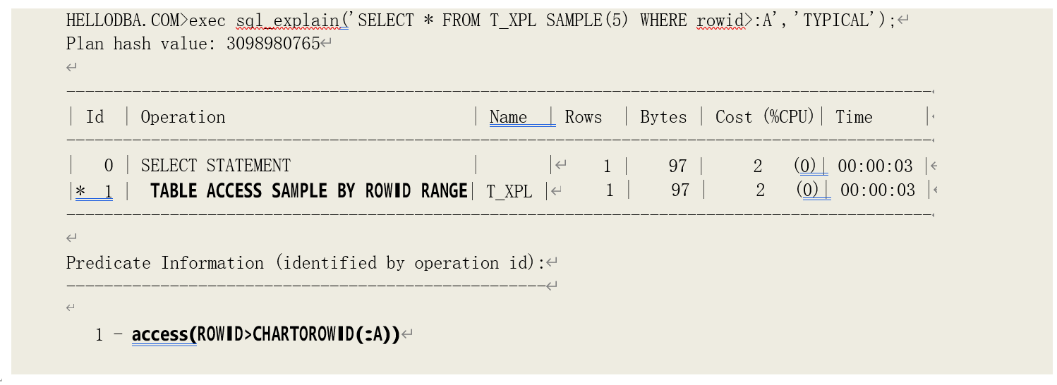 通过对指定的一段范围的 ROWID,以取样的方式访问表。