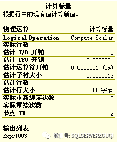 上面的话是MSDN上的解释,常量扫描会引入一个或者多个常量行到一个查询中;通常情况下紧跟常量扫描的是计算标量运算符,计算标量运算符会为常量扫描运算符产生的行添加列。