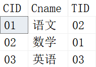 --建表语句CREATE TABLE Course ( CID VARCHAR (10), Cname nvarchar (10), TID VARCHAR (10))--插入测试数据INSERT INTO Course VALUES('01' , N'语文' , '02')INSERT INTO Course VALUES('02' , N'数学' , '01')INSERT INTO Course VALUES('03' , N'英语' , '03')