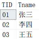 --建表语句CREATE TABLE Teacher ( TID VARCHAR (10), Tname nvarchar (10))--插入测试数据INSERT INTO Teacher VALUES('01' , N'张三')INSERT INTO Teacher VALUES('02' , N'李四')INSERT INTO Teacher VALUES('03' , N'王五')