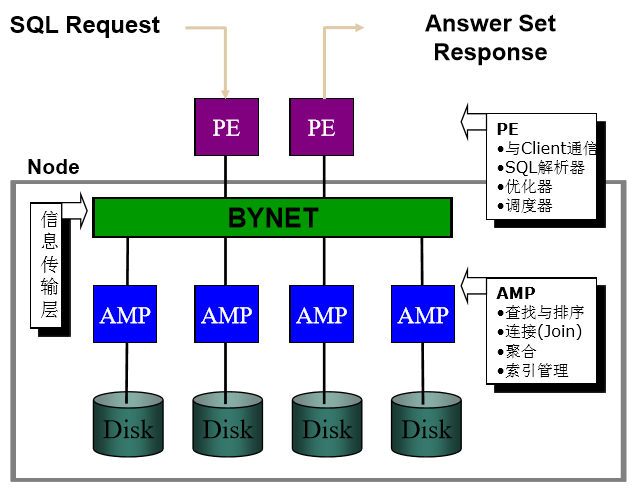 下图是其技术架构,其是一个典型的MPP架构产品。