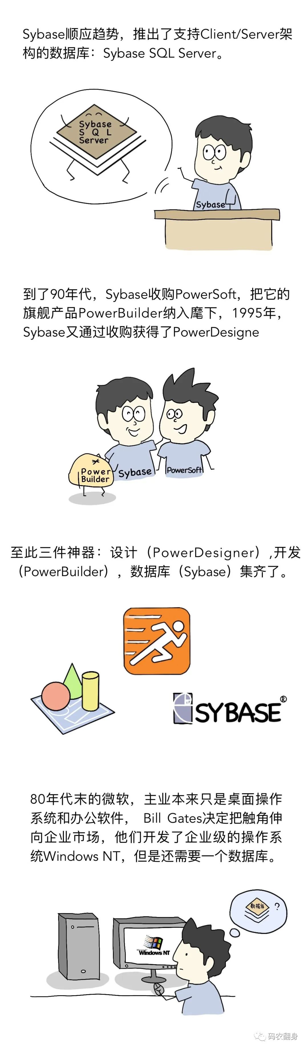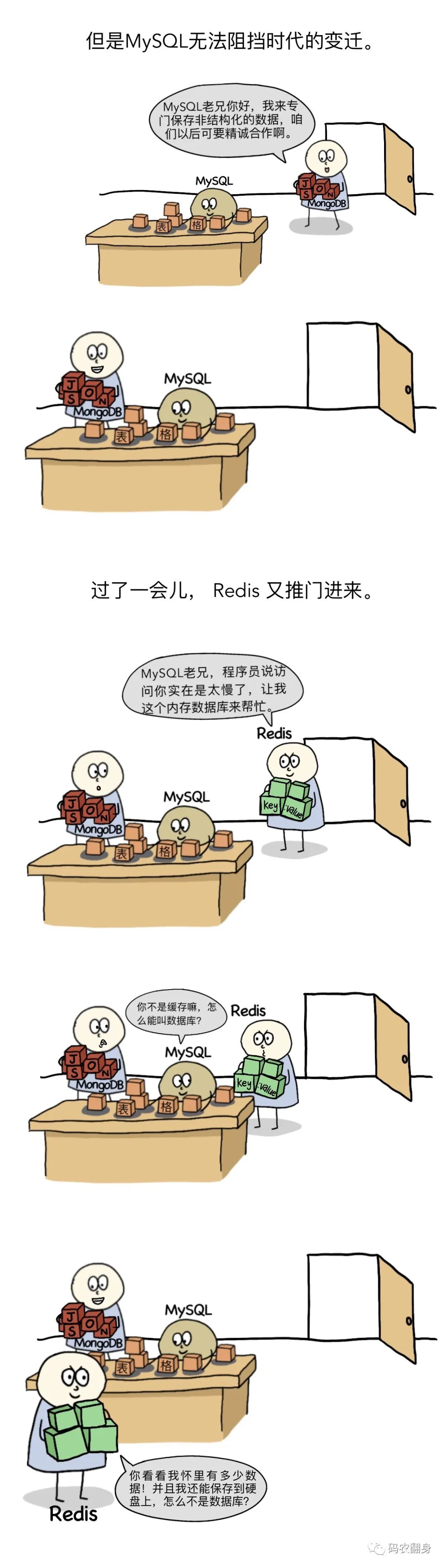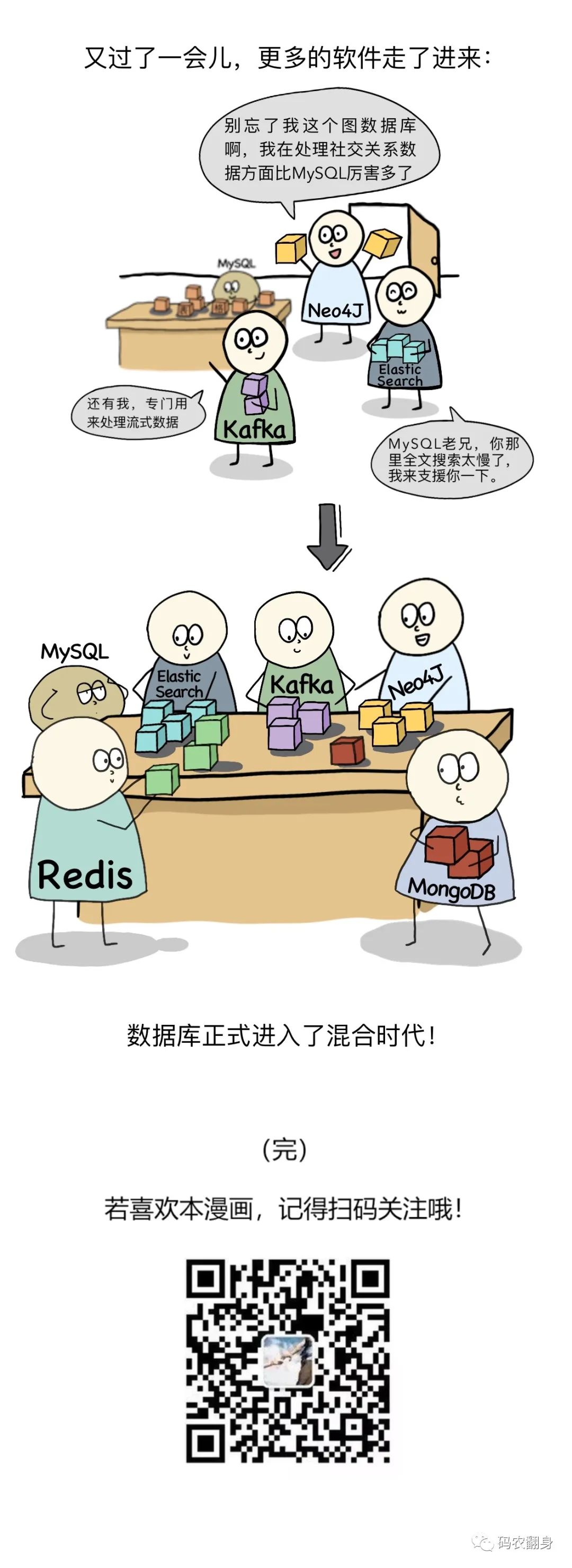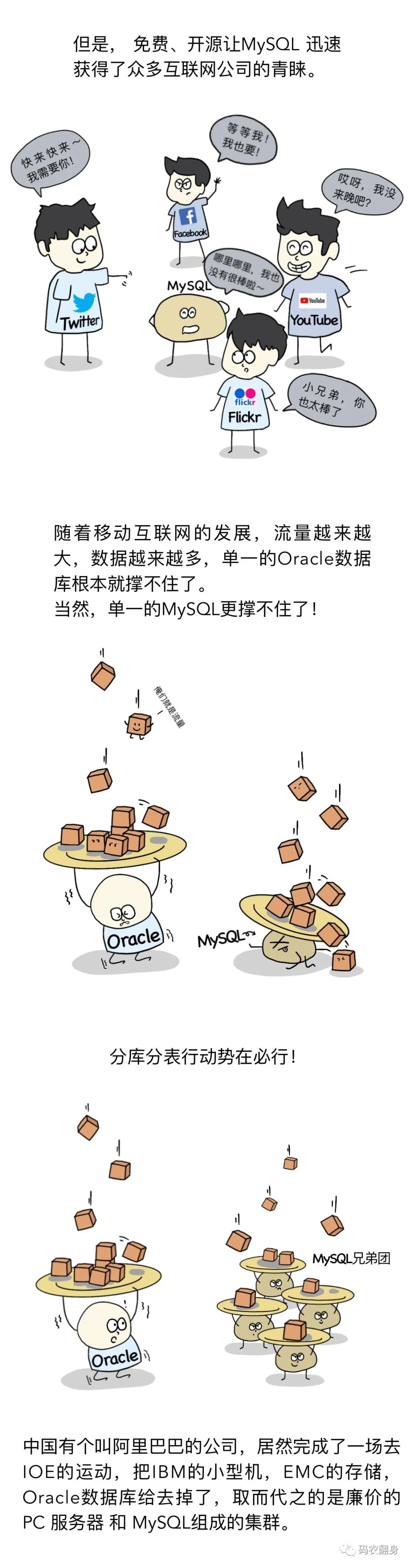 后记:这篇漫画文章简单回顾了数据库60年的发展历史,从大机时代,到局域网时代,再到互联网/移动互联网时代。数据库的王者是谁?其实是一代新人换旧人而已。由于篇幅所限,并没有把所有的数据库都囊括其中,比如dBase, FoxPro, Access等桌面数据库就没机会出场,Informix,SQL Anywhere, 列式数据库等也没有介绍,在数据库的发展历史中,一共产生了4位图灵奖获得者,文章中提到了两位,分别是开发网状数据库的Charles W. Bachman和发明关系模型的Edgar F. Codd, 第三位是对数据库事务有巨大贡献的James Gray, 第四位是开发了Ingres 的Michael Stonebraker。