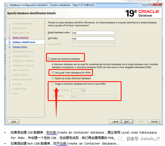 容器(container)是多租户体系结构中的数据或元数据的逻辑集合。CDB(containerdatabase)容器数据库在图形化创建实例时若勾选了“创建为容器数据库(C)”则会出现容器数据库称之为CDB,否则称之为 Non-CDB,如之前的 11g 数据库就称之为非容器数据库 Non-CDB,那么 PDB(Pluggable Database )在 CDB 下被称作可插拔数据库。19c 还可以选择创建为非容器数据库 Non-CDB,但 20c 以后则强制使用 CDB,不在支持非容器数据库了。