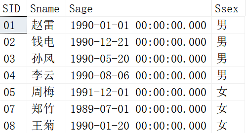 SELET DATE 日期,TNAME 姓名,SAGE 年龄FROM TABLEA